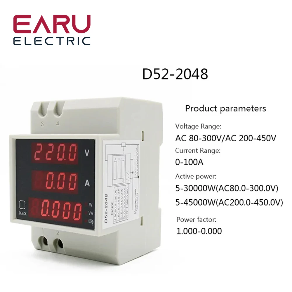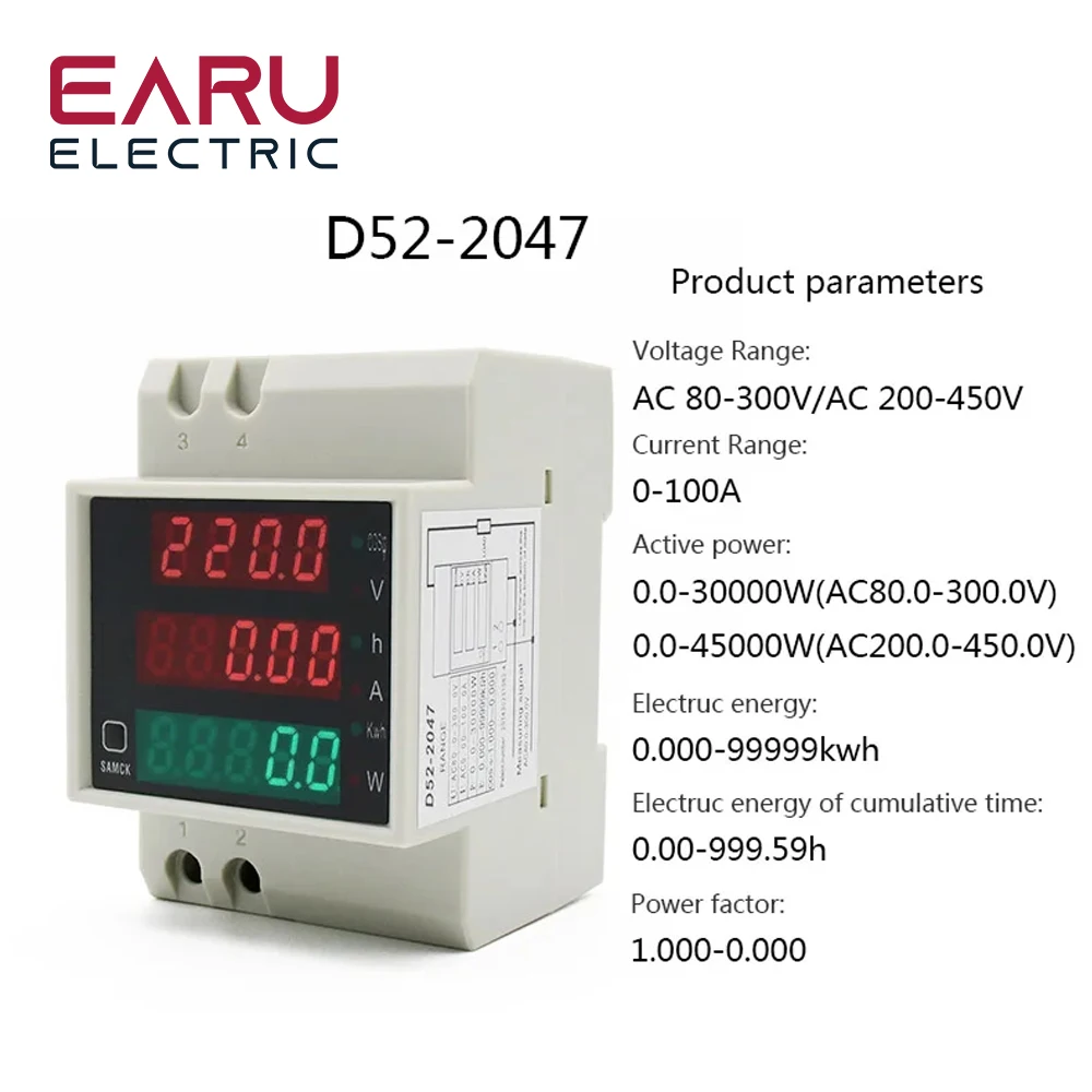 Earu D52-2042 DIN Rail Multifunction Meter is a versatile and efficient solution designed to meet your diverse electrical monitoring needs. With its wide voltage range from AC 80-300V to AC 200-450V and a current rating of 100A, this digital LED meter provides accurate measurements for a variety of electrical systems. Whether you’re monitoring voltage, current, active power, power factor, or energy consumption, this meter delivers accurate and reliable data, making it an indispensable tool for any electrical installation.