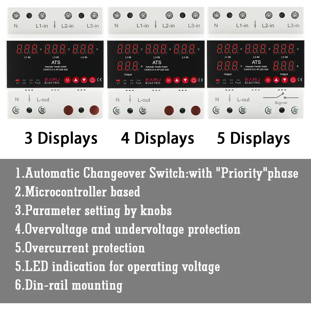 Experience the efficiency of Earu EAATS-D-4-4P-220-100A overvoltage and undervoltage protector. With adjustable overvoltage and undervoltage protections, this device gives you complete control over your power supply. Incorporating overcurrent protection ensures that your systems always operate within safe parameters, giving you peace of mind.