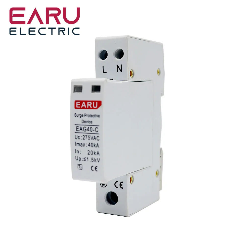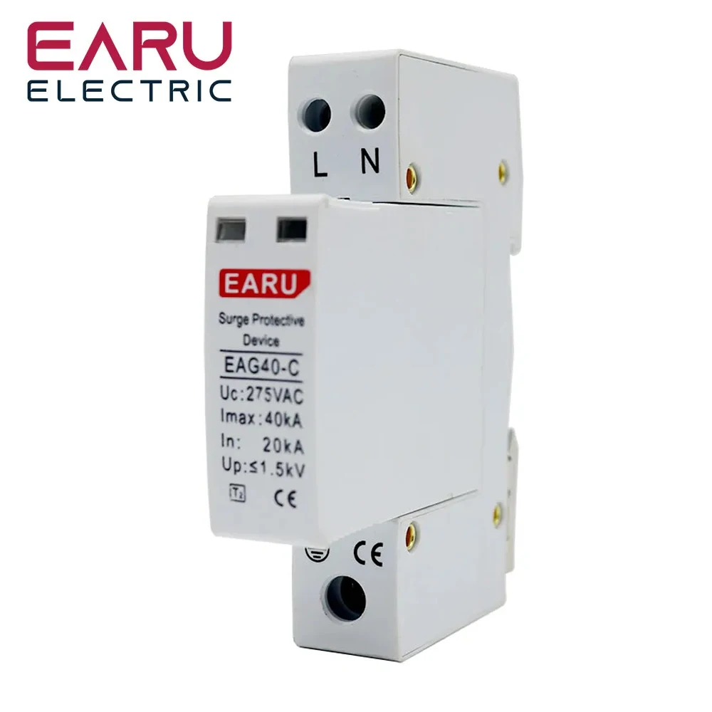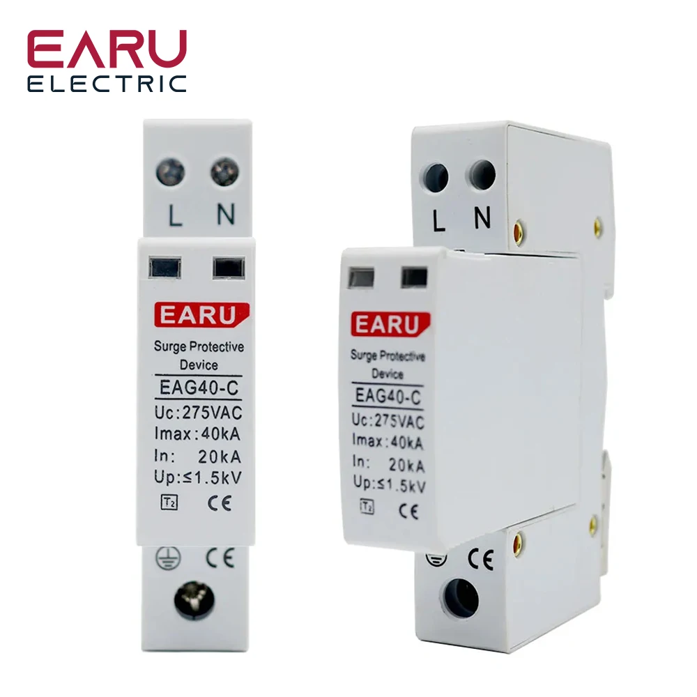 Keep your home and electrical devices safe with the Earu EAG40-C 1P+N AC SPD 4P 20KA~40KA 275V Home Surge Protector. This advanced low-voltage protective device safeguards your appliances against unexpected power surges and lightning strikes, providing reliable protection 24 hours a day.