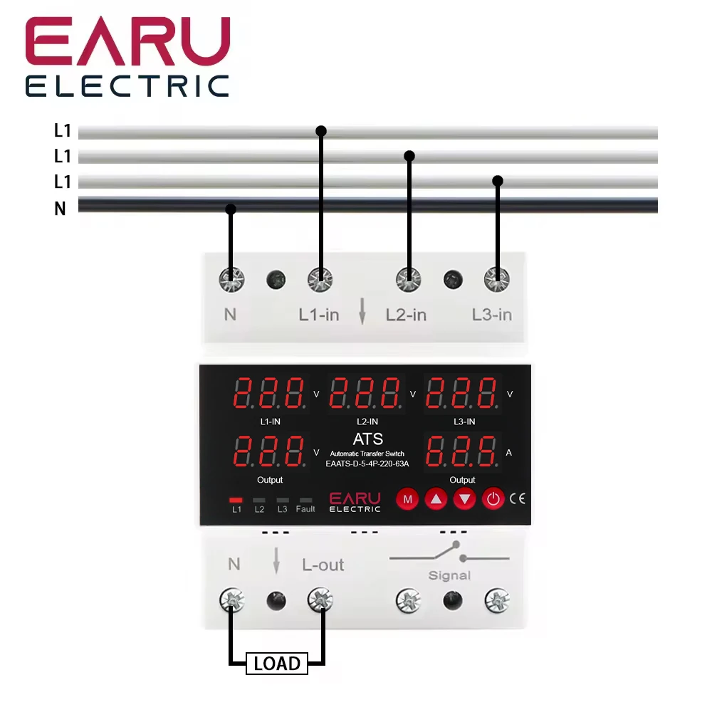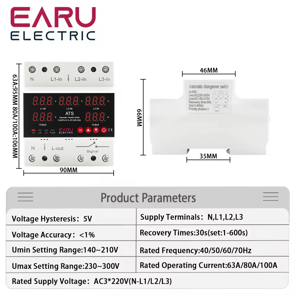 Earu’s three-phase four-wire surge protector is equipped with advanced technology to protect electrical systems from overvoltage and undervoltage. With its 4-input, 2-output circuit, it effectively detects fluctuations in voltage levels and quickly switches to the appropriate mode, ensuring the stability and safety of the connected equipment.